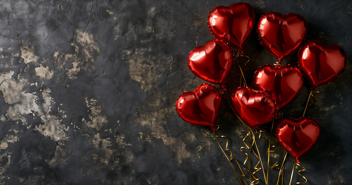 Heart shaped balloons, decorative balloons, marble concrete background, holiday celebration, Valentine's Day, wedding, love, confession