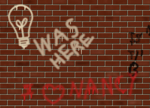 Dark concrete cross i focus. Red brick building out of focus in the background.