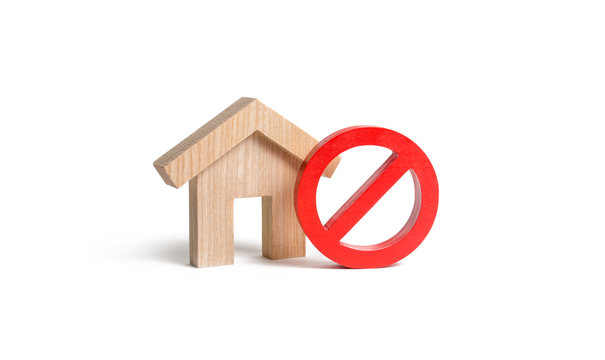 No Sign and the wooden house on an isolated background. Unavailability of housing, busy or low supply. Inaccessible and expensive housing. Seizure and freezing of assets by a bank or court.
