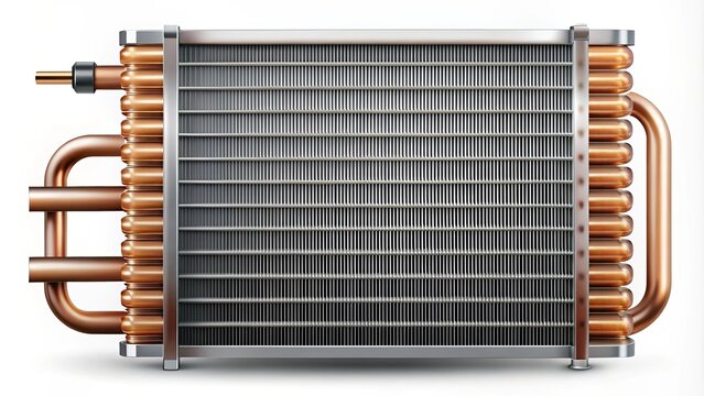 Stylish vector icon representing a ductless HVAC condenser coil, designed with copper or aluminum tubes and fins,