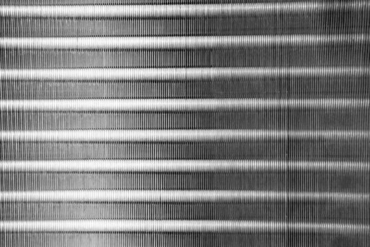 Close up aluminum fin of cooling condenser coil of air condition system. Pattern for abstract background.