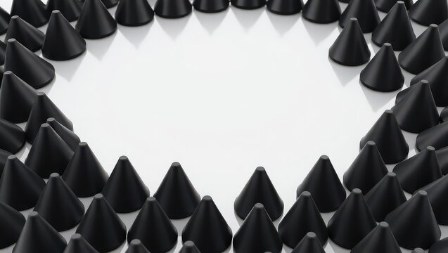 A pattern of black cone shaped objects arranged in a circle on a white surface with a white center
