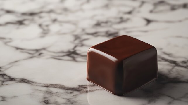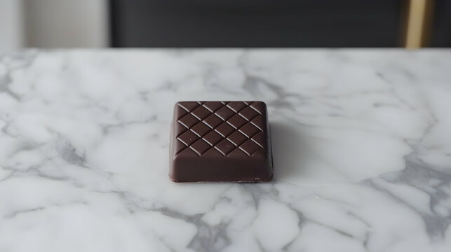 Dark chocolate square confectionery on marble surface, minimalist kitchen background, food photography for website