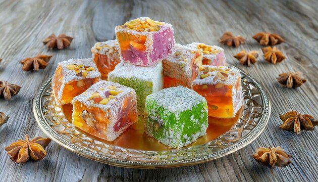 Turkish Delight holiday candy close-up. ramadan kareem. Eid mubarek sugar close up