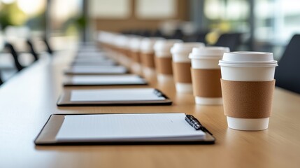 Modern conference room with sleek wooden design and white furniture