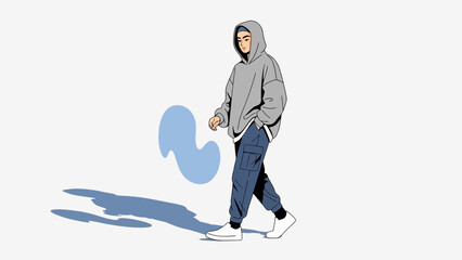 A young man stares intensely ahead while standing outside during a light rainfall, wearing a white hooded jacket.