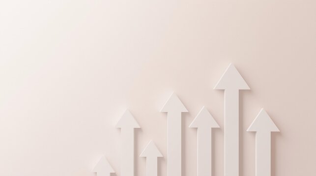An abstract representation of growth, featuring white arrows pointing upward against a soft beige background