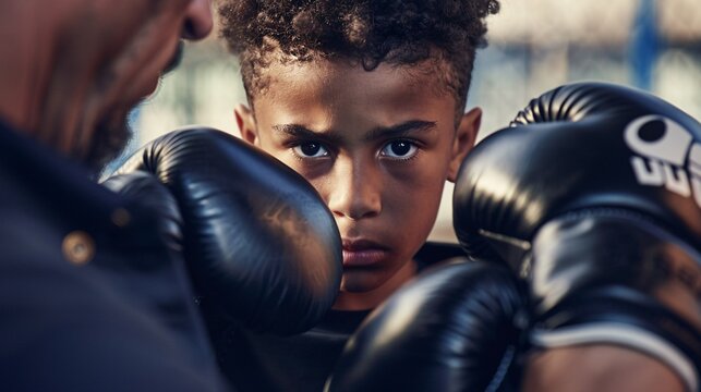 A youthful boxer getting ready for a training session with the assistance of their coach, representing a sporty martial arts lifestyle.
