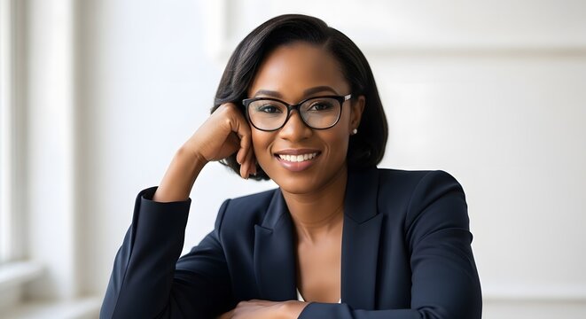 Confident woman in professional setting for corporate template