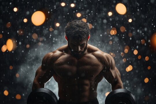 a fitness model showcases their sculpted physique in the gym's mirrored studio, their confident posture and toned muscles reflecting the dedication
