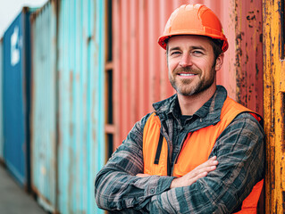 Promoting Safety and Leadership Engineer at Harbor with Cargo Containers, Logistics Management Concept