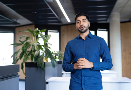 Portrait of a tax consultant standing confidently in a professional office, smiling