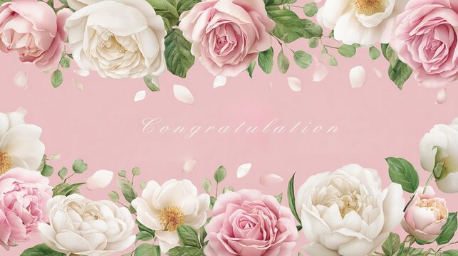 Beautiful floral arrangement with congratulatory message on a pink background for celebrations and special occasions