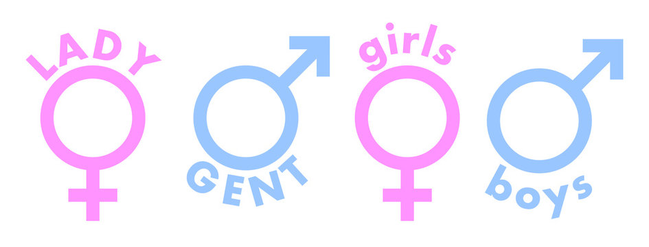 Ladies / gents - male / female signs. Icons in pink and blue color to help differentiate whom is the product suitable for.