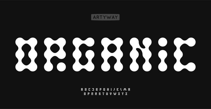 Fluid dots font, letters with smooth connected circles, smooth organic tech style alphabet. Soft rounded typographic design. Creative typography. Vector typeset.
