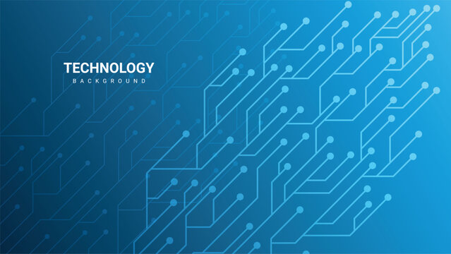 Blue digital background featuring abstract circuit lines and connected nodes ideal for tech themed designs and modern technology interfaces