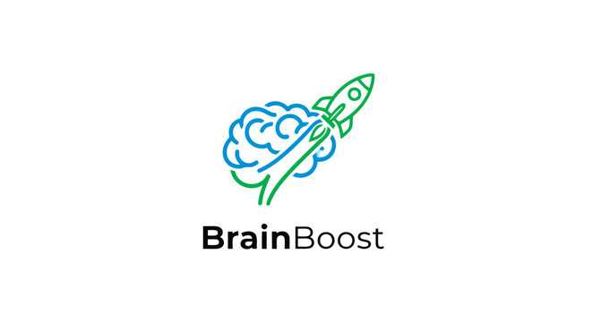 Brainboost logo featuring a brain and rocket for boost concept vector design