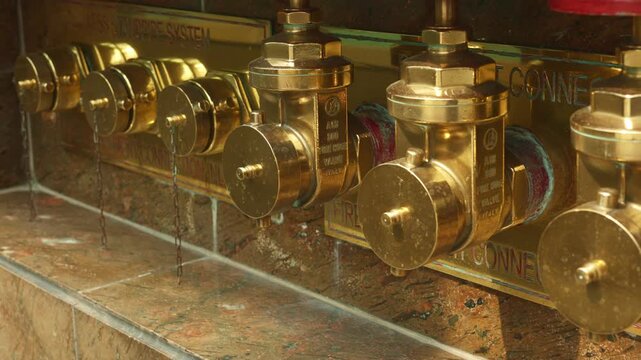 Engineer are checking and inspection a fire extinguishers tank in the fire control room for safety training and fire prevention.