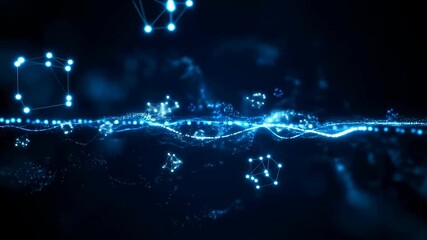 Abstract digital network connections with glowing blue nodes and lines. Visual representation of data flow and connectivity in technology and communication