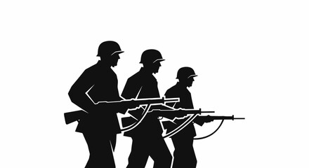 Silhouetted Soldiers Marching Forward with Rifles, Illustrating Military Strength and Dedication for Historical Documentaries and Patriotic Memorials.
