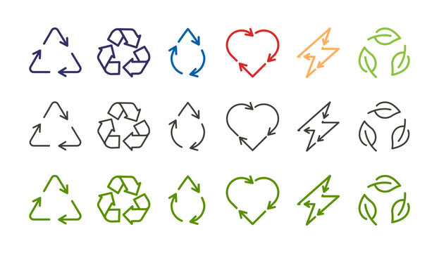 Collection of recycling and ecology vector icons. Recycling arrow ecofriendly green symbol. Recycled Package Sign. eco-friendly recycling for apps and websites. Vector Illustration