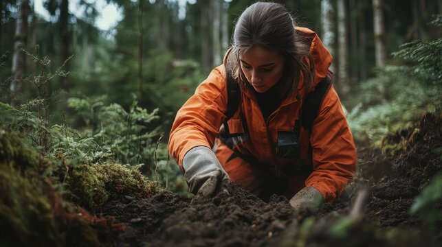 A female ecologist working in the forest