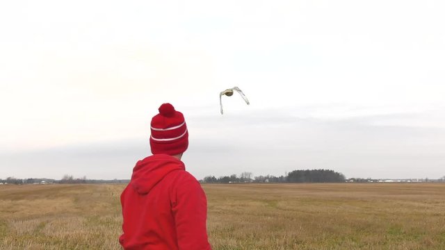 snowy owl conservationist guy releases the bird into the wild 4k slow motion 60fps