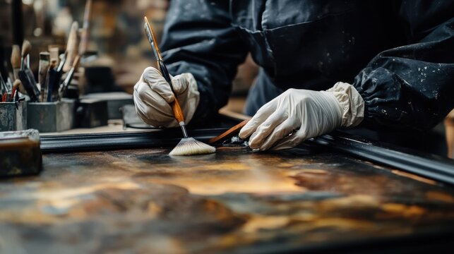 Close-up of a museum conservator's desk with restoration tools and conservation materials, symbolizing a job in art conservation