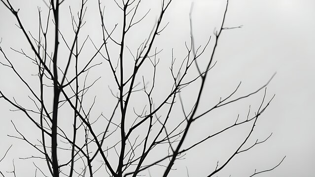 answerable. Bare tree branches against an overcast sky in minimalist silhouette. travel magazines, destination branding, designed for travel destination branding, used by logistics managers.