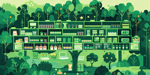 A tree map displaying the categories and subcategories of a large online store, using a consistent green color scheme for easy navigation.