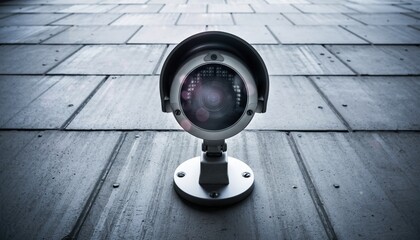 A high security surveillance camera mounted on a textured wall for constant monitoring and observation