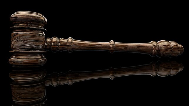 Polished Wooden Gavel Reflecting on Black Surface, Law Symbol