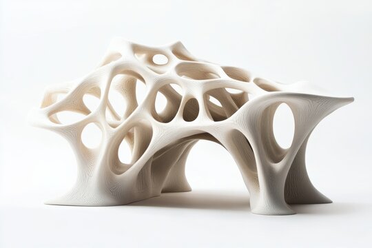Organic architectural form, biomimicry in design, eco-friendly structure, on solid white background, single object