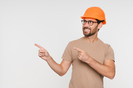 Smiling construction worker promoting professional services
