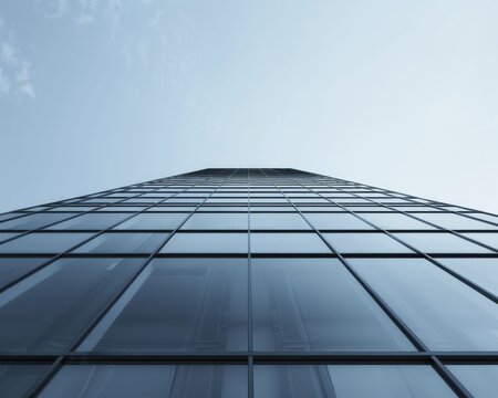 Modern design architecture featuring corporate office windows with reflection across an urban facade under blue hour night light for refined commercial imagery