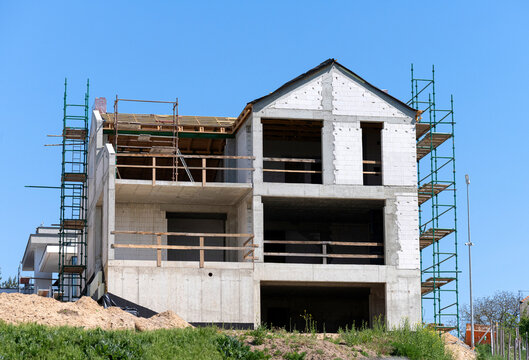 Traditional thatched hut on stilts isolated on transparent background. Wooden hut with a straw roof and ladder isolated on white background.