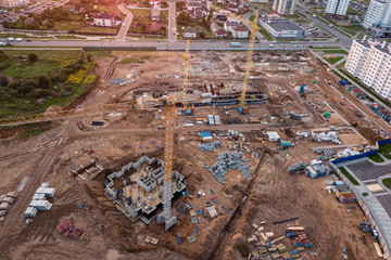 Cityscape with skyscrapers under construction promoting urban growth