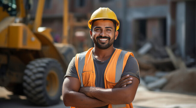 Portrait of young professional heavy industry engineer or worker isolated on green background