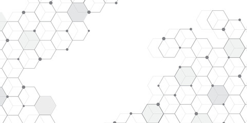 Hexagonal Molecular structure abstract tech network pattern. abstract geometric hexagon with connecting dots and lines. connecting Medical science, technology concept background Vector illustration.