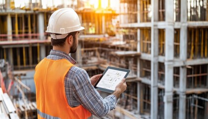 A diligent worker meticulously lays bricks in a construction setting, with a stunning sunset backdrop, symbolizing hard work and perseverance in building something great.