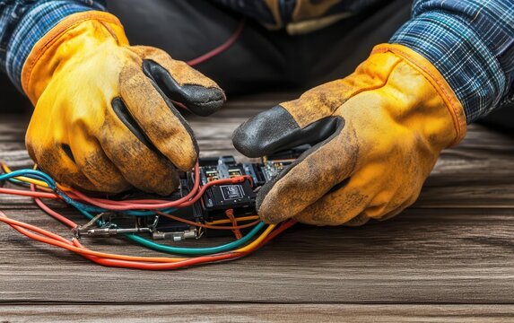 Manual Worker Holding Yellow Safety Helmet with Protective Gloves on Vibrant Yellow and Orange Background, Emphasizing Workplace Security and Safety Concepts