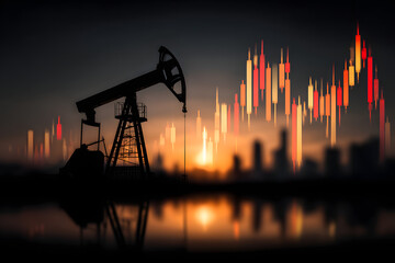 Premium Crude Oil Pumpjack Silhouette with Financial Data Overlay Modern Energy Sector Investment Visual for Corporate Marketing and Editorial Use