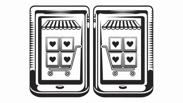 Smartphones display online shopping with heart symbols