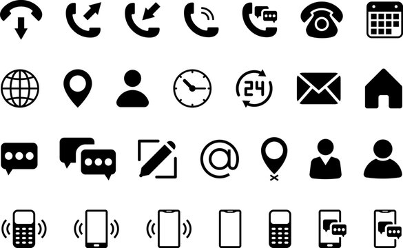 Simple Black Line Contact Icons for Website or App, web icon vector