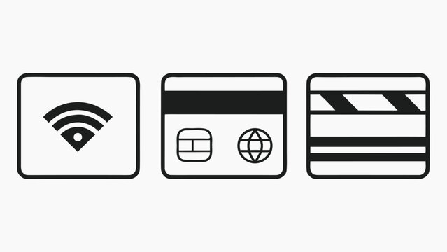 Wireless Payment Options:  Credit Card, Debit Card, and NFC Contactless Icons; Simple Black and White Line Art.