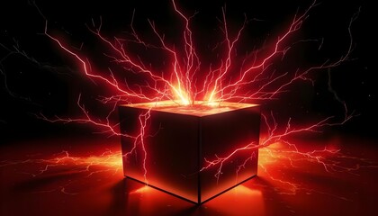 Flashes of bright small lightning around a dark cubic chamber containing huge reserves of energy