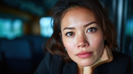 Young Asian woman covering her face in a serene indoor setting with muted tones and soft lighting during a quiet afternoon