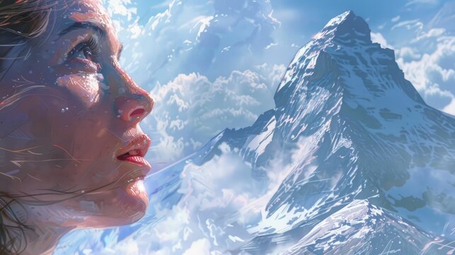 Contemplative Woman Enjoying Mountain Scenery At Sunset Templates