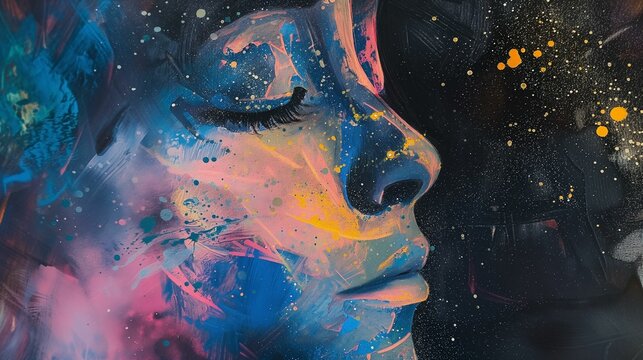 Abstract Portrait of Woman with Starry Paint Splatter