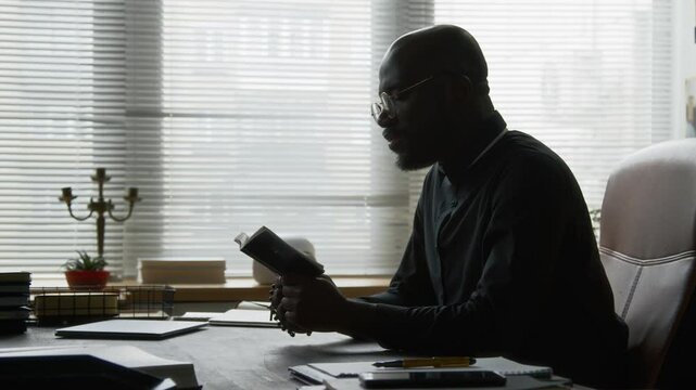 Silhouette of man meditating near cross during orthodox easter